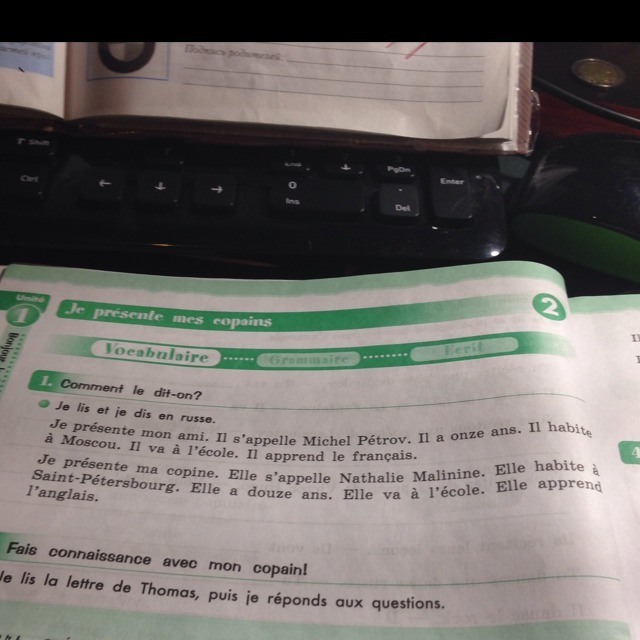 1) Я представляю своего друга. Его зовут Миша Петров. Ему 11 лет. Он живет в Москве. Он ходит в школу. Он учит французский язык.