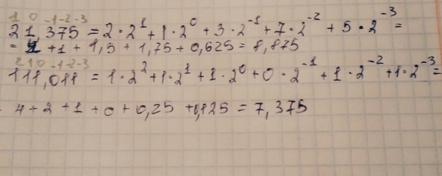 Переведите число 21,375 из десятичной СС в двоичную.