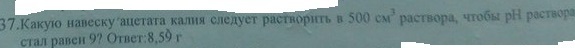 Какую навеску ацетата калия следует растворить в 500 см^3 раствора, чтобы pH раствора стал равен 9? Ответ:8,59г.
