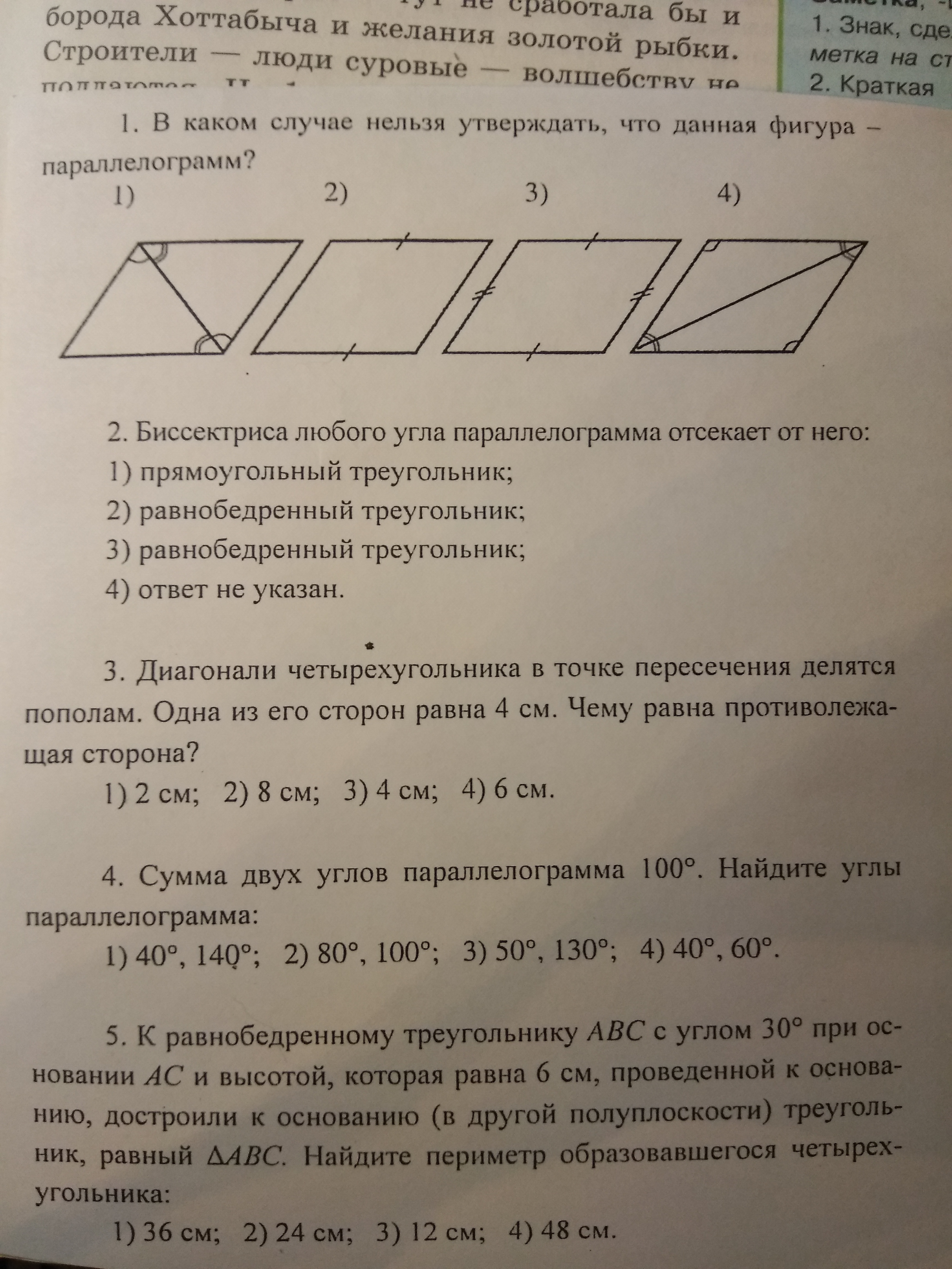 1. - 2, на втором рисунке не указано, что две другие стороны равны.