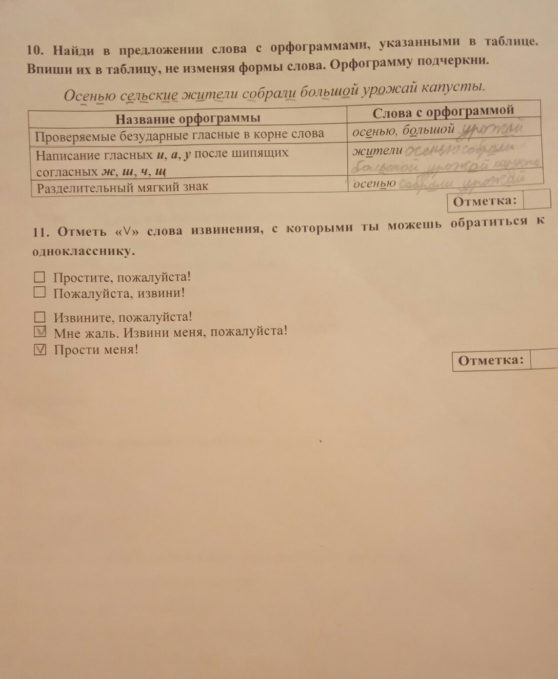 найди в предложении слова с орфограмами, указанными в таблице. в пиши их в таблицу, не изменяя формы слова. орфограмму подчеркни посмотрите мы правильно сделали