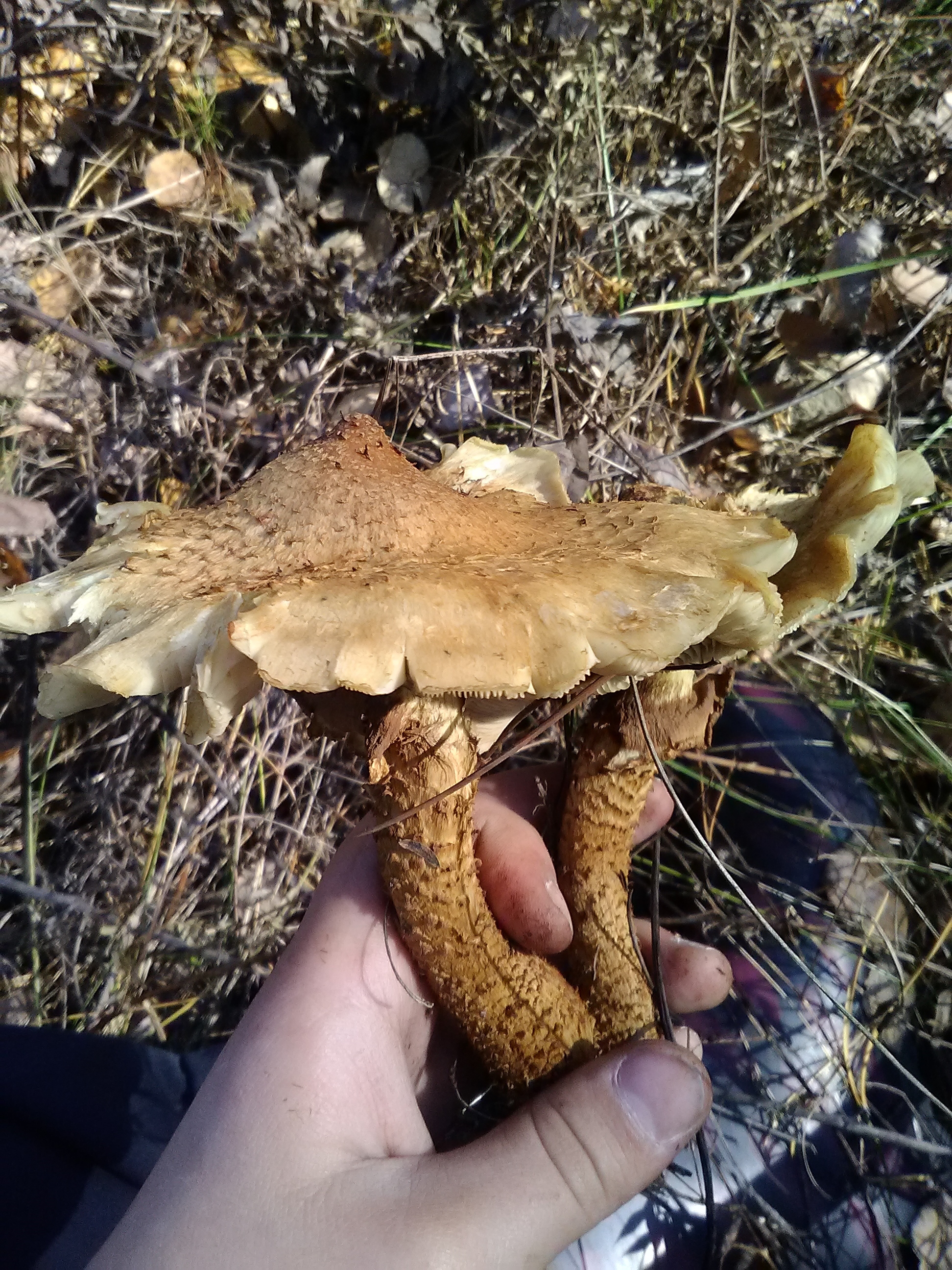 Это одна из разновидностей поганки, не стоит трогать их руками, а тем более собирать.