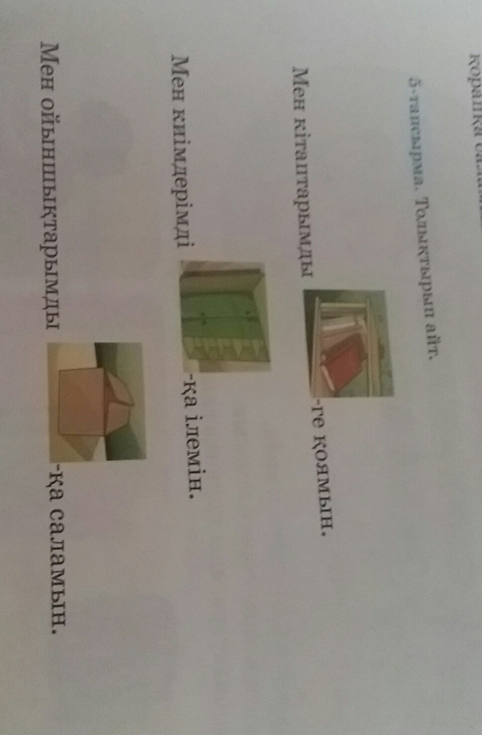 мен кітаптарымды сөреге қоямын.
