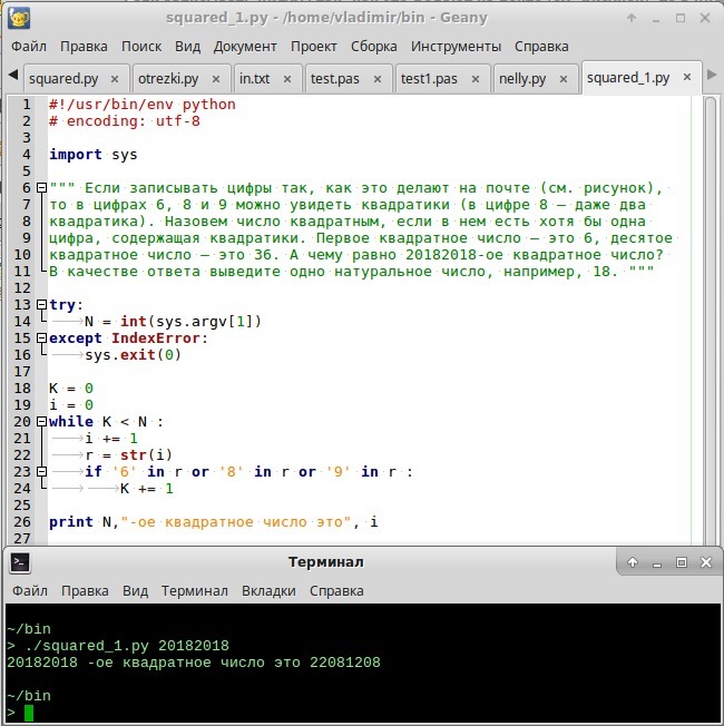 Если записывать цифры так, как это делают на почте (см. рисунок), то в цифрах 6, 8 и 9 можно увидеть квадратики (в цифре 8 – даже два квадратика). Назовем число квадратным, если в нем есть хотя бы одна цифра, содержащая квадратики. Первое квадратное число – это 6, десятое квадратное число – это 36. А чему равно 20182018-ое квадратное число? В качестве ответа выведите одно натуральное число, например, 18.