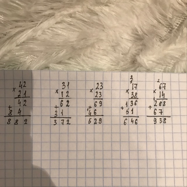 42•21=882 31•12=372. 23•23=579 17•38=646 67•14=938