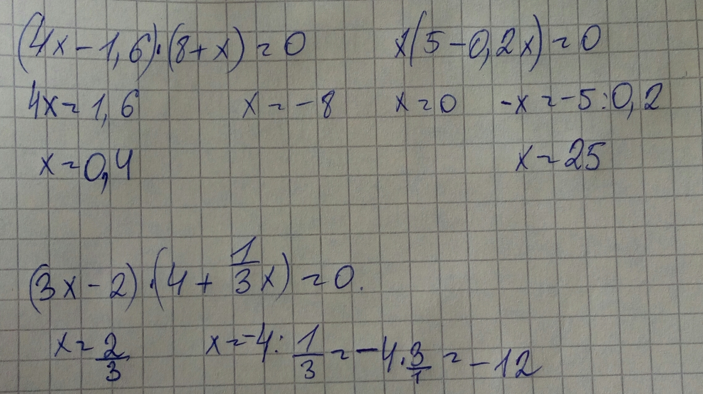 3. (3x - 2) × (4 + 1/3x) = 0