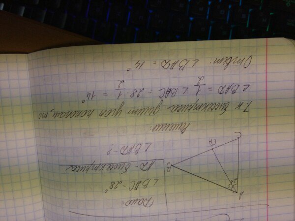 в треугольнике abc известно что угол bac 28 ad биссектриса. Найдите угол BAD. Ответ дайте в градусах.