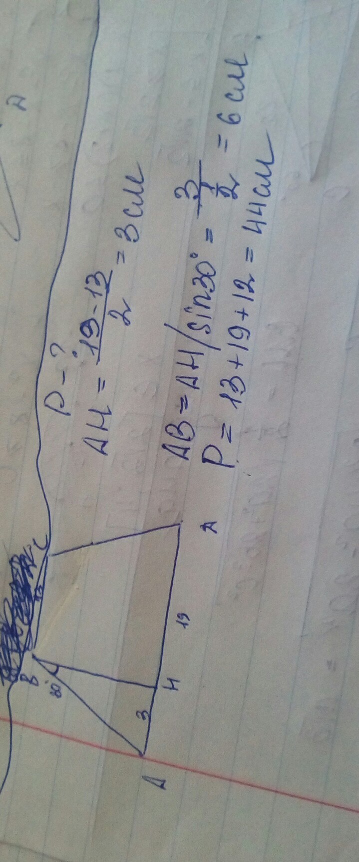 в равнобедренной трапеции высота образует с боковой стороной угол 30 градусов а ее основания равны 13 см и 19 см Чему равен периметр трапеции