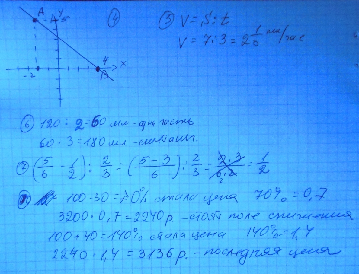 7. ( это типо дроби пять шестых - 5_6 - 1_2 , ну типо того, в скобках типо ну и там должно быть значит первое решается): (5_6 - 1_2 ) : 2_3 =