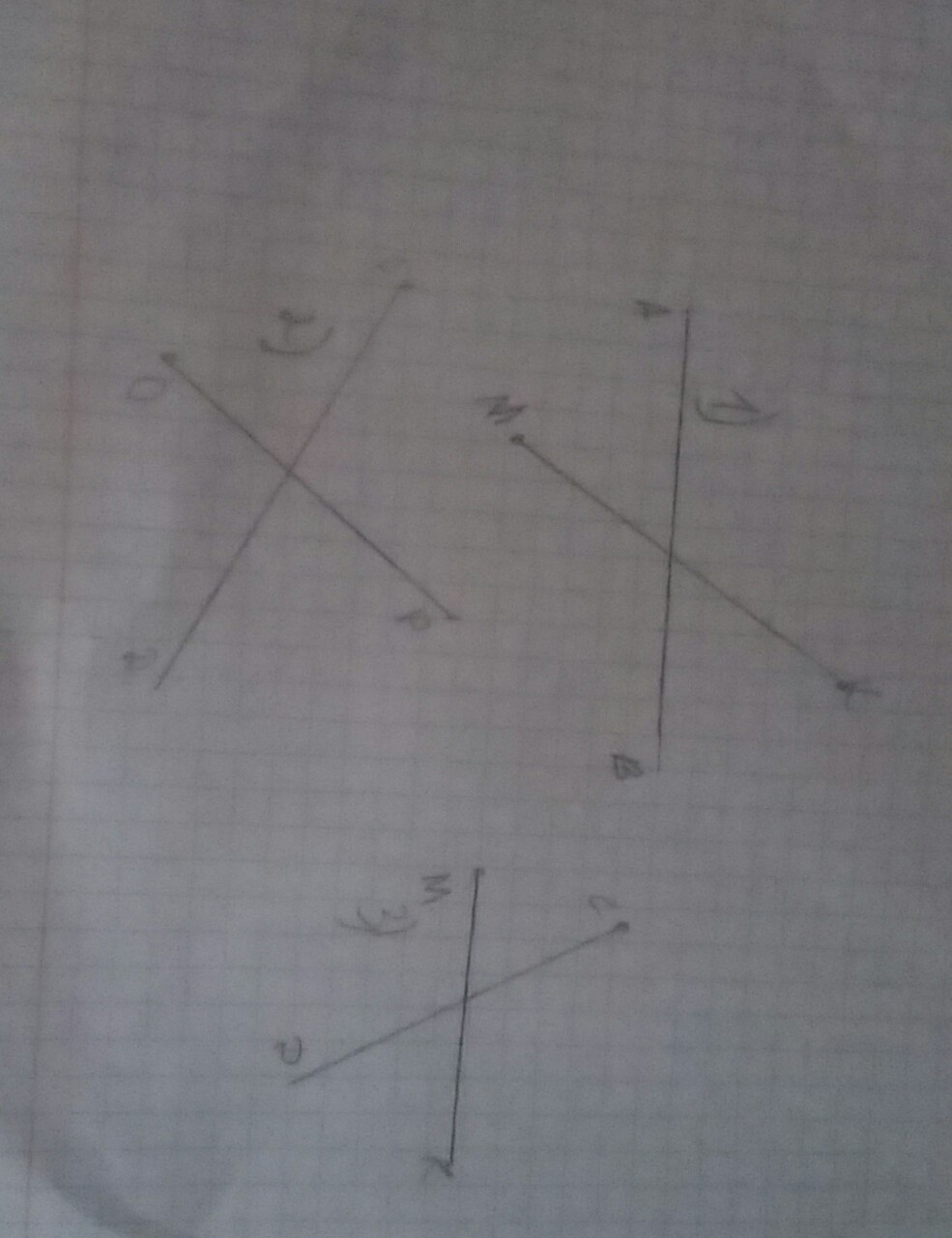 Простите луч СD, прямую АВ и отрезки МК и ОР так, чтобы отрезок МК лежал на прямой АВ, отрезок ОР на луче СD и чтобы прямая АВ пересекала отрезок ОР, а луч СD - отрезок МК.