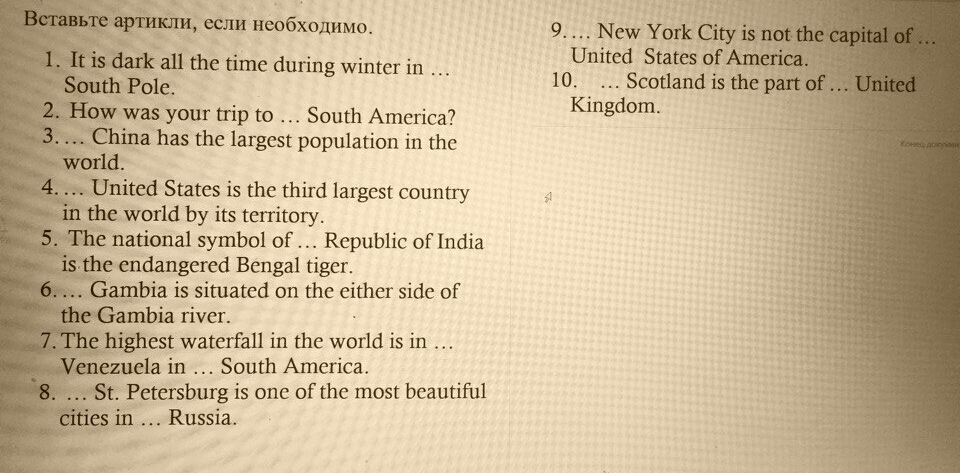 1) a 2) ничего 3) а 4) ничего 5) ничего 6) а 7) а 8) The, ничего 9) the, ничего 10) the, the.