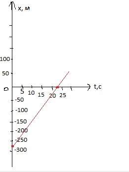 х(20 с)=-270+12*20=-30 м - координата через 20 с