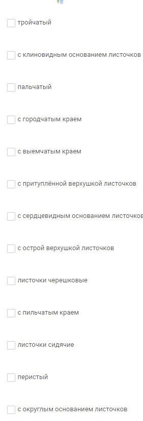 Мистер Фокс решил потренироваться в искусстве морфологического описания видов. В качестве объекта описания было выбрано приведённое ниже растение. Выбери все пункты, верно характеризующие строение листа.