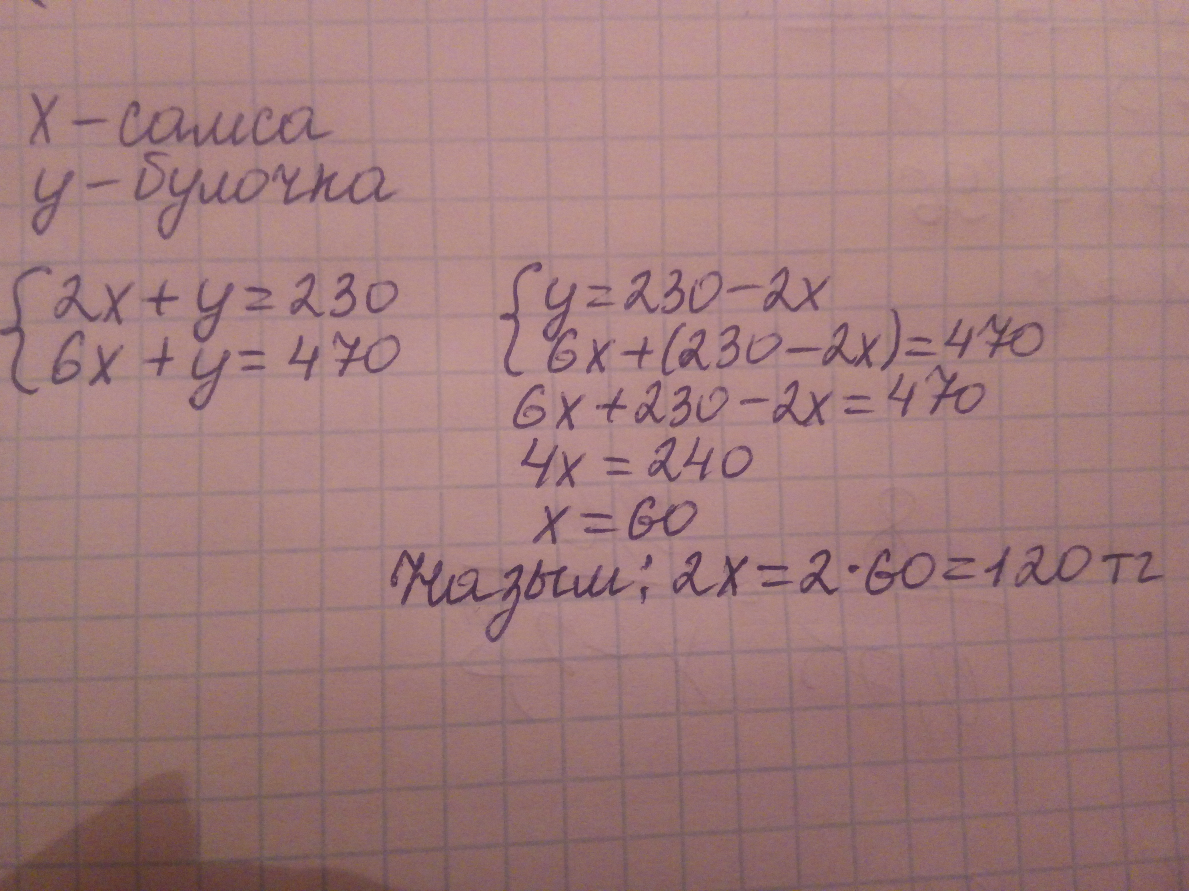 Алия потратила на 2 самсы и булочку 230тг.Маншук заплатила за 6 самсы и булочку 470тг,и 2самсы отдала Назым.Сколько тг должна Назым отдать Маншук?