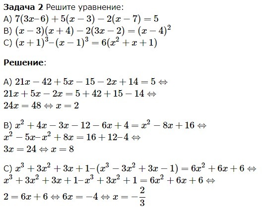 А)Перенос с неизвестным в одну сторону с известными в другую,Следование действиям +-:* и оставляем x в одной стороне а число стоящее рядом переносим за равно и делим на это число