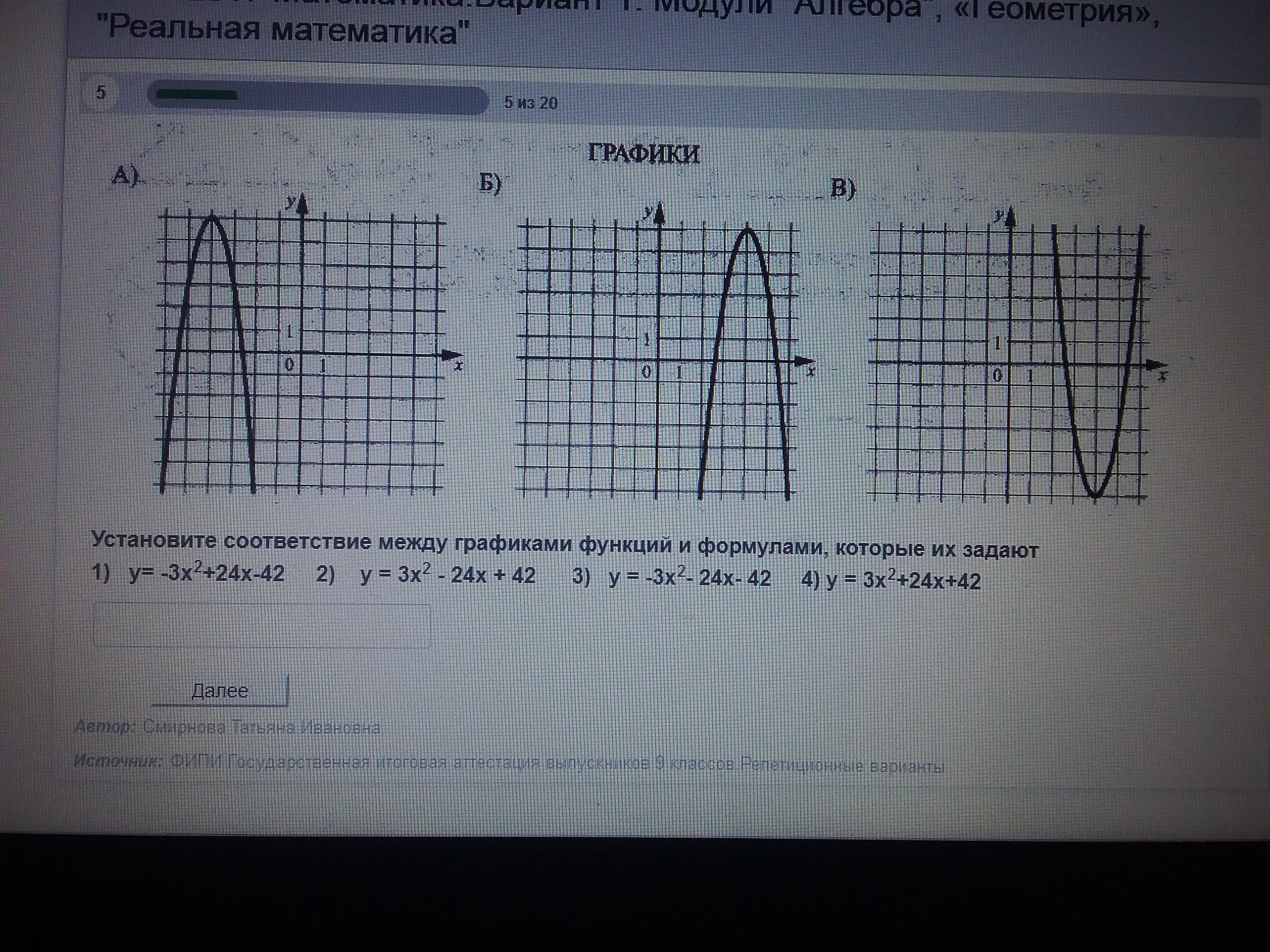 ПОЖАЛУЙСТА!!!! Установите соответствие между графиками функций и формулами, которые их задают...на фото всё....пожалуста...