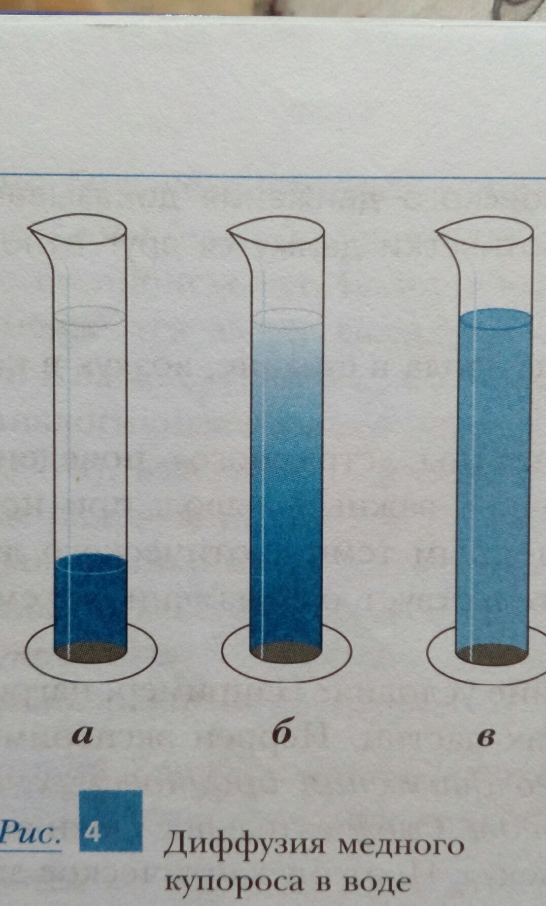 как изменяется скорость диффузии в мензурке с медным купоросом(рис.4), если ее поместить в холодильник, выставить на улицу в жаркий летний день? Объясните различия с точки зрения молекулярной теории.