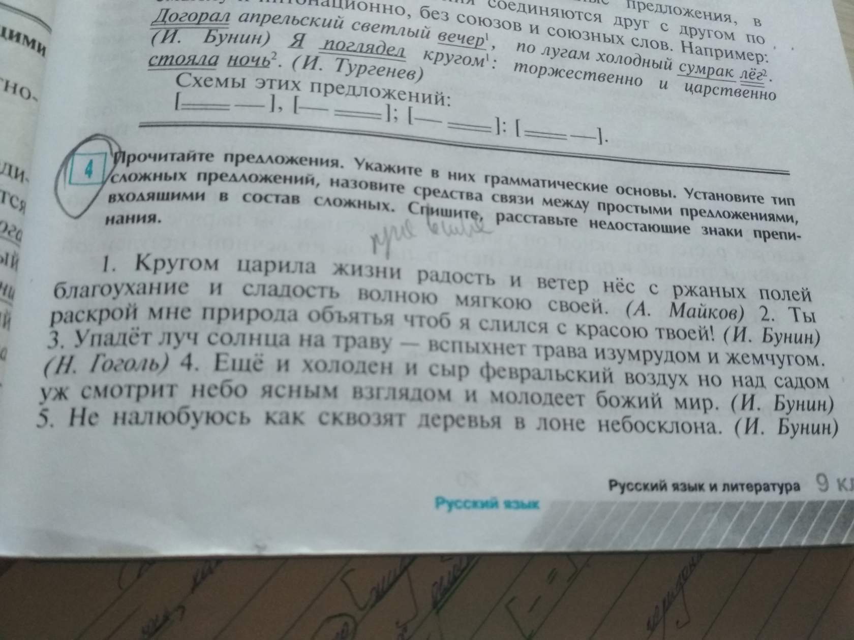 1.Кругом царила жизни радость и ветер нёс с ржаных полей благоухание и радость, волною мягкою своей. (Грамматические основы: царила радость и ветер нёс)-сложное предложение