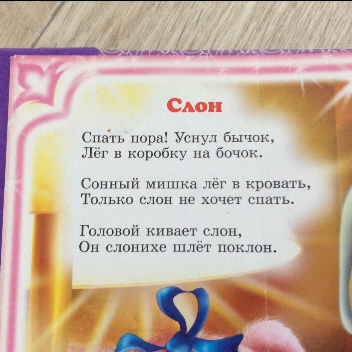 Teddy's sleeping in his cot,