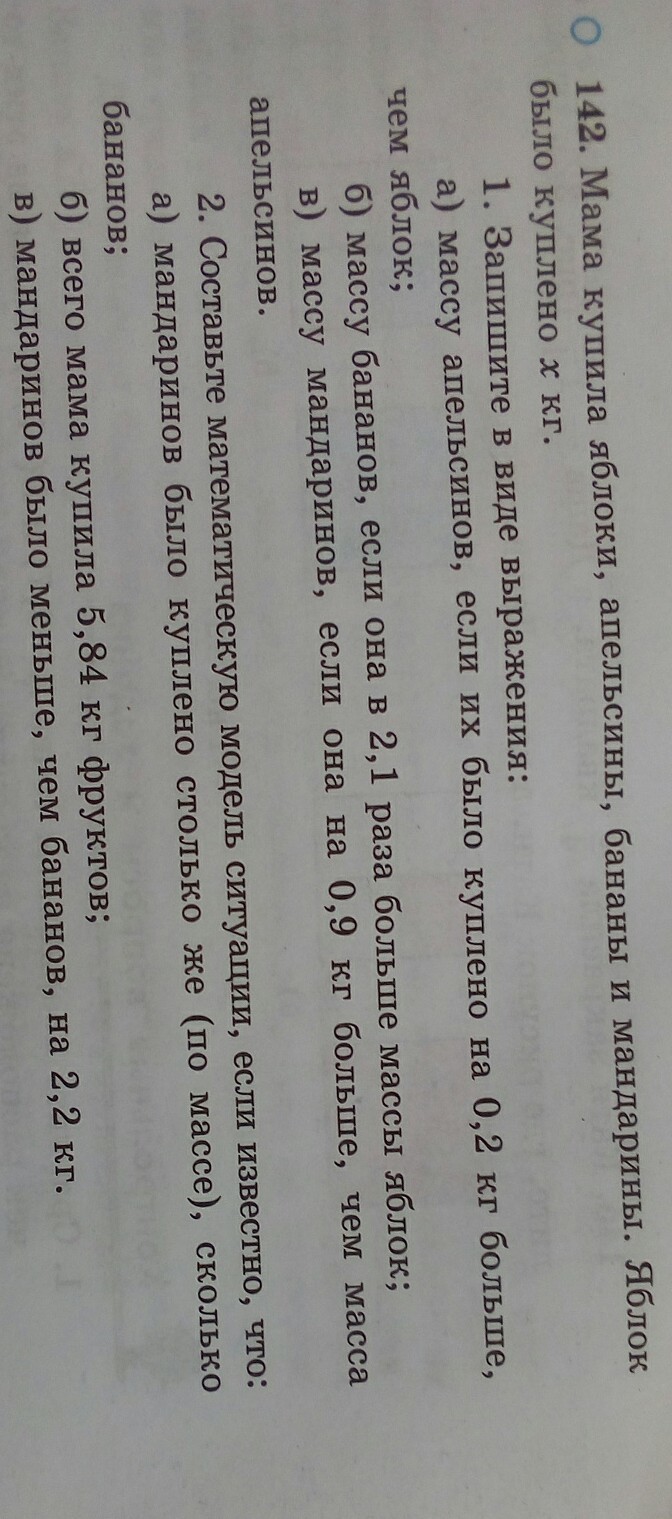 в) (х+0,2)+0,9 = х+1,1(кг)- масса мандаринов;