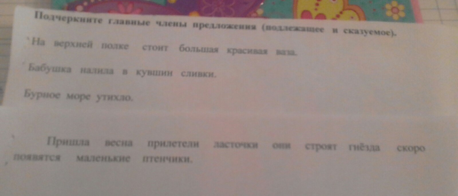 1. Ваза (что делает?) стоит. Ваза - Подлежащее, стоит - сказуемое