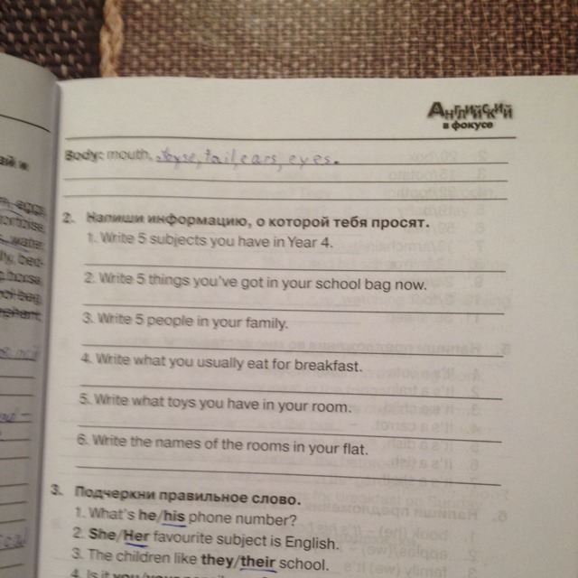 2. A book, a pen, an apple, a pencil case, a copybook