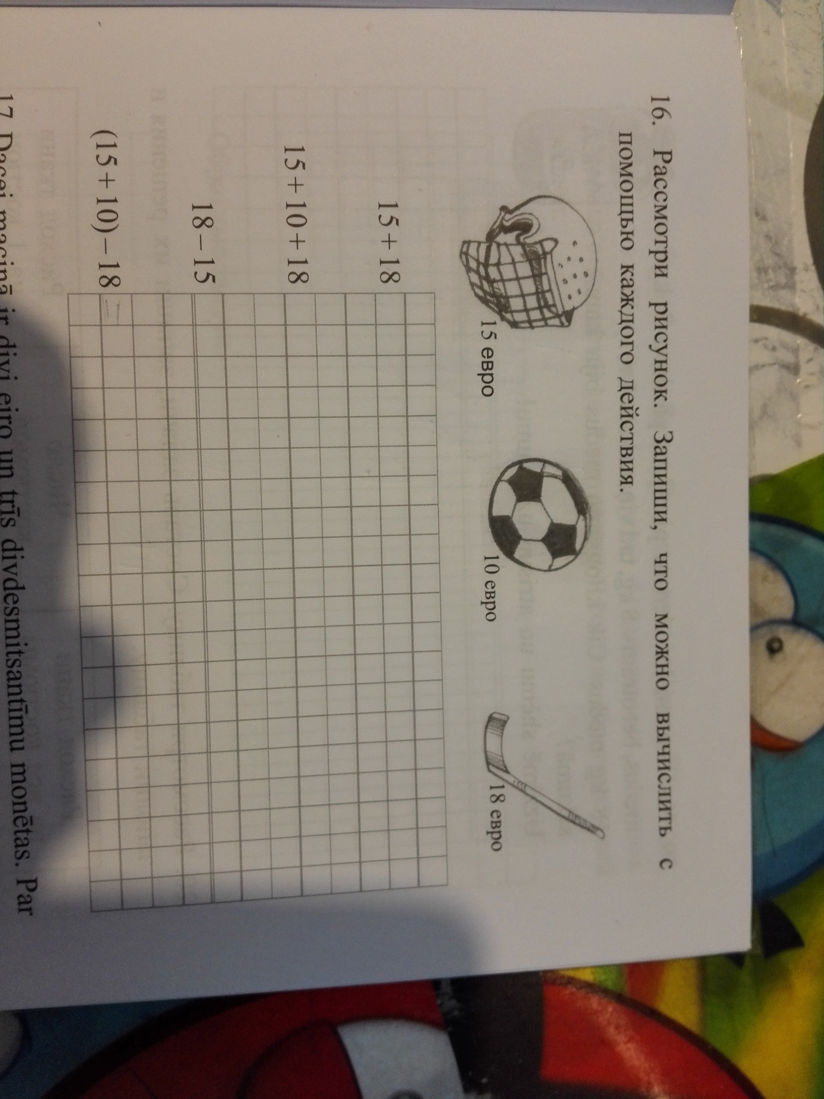 15+18 узнаем сколько стоит шлем и клюшка 15+18+10 узнаем сумму всех предметов 18-15 узнаем разницу стоимости клюшки и мяча (10+15)-18 узнаем разницу стоимости шлема и мяча вместе от разницы клюшки☺