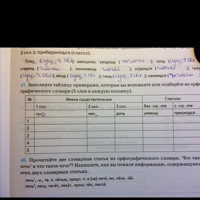 5 колонка - стереть, пораниться, слушать, учиться, оденешься.