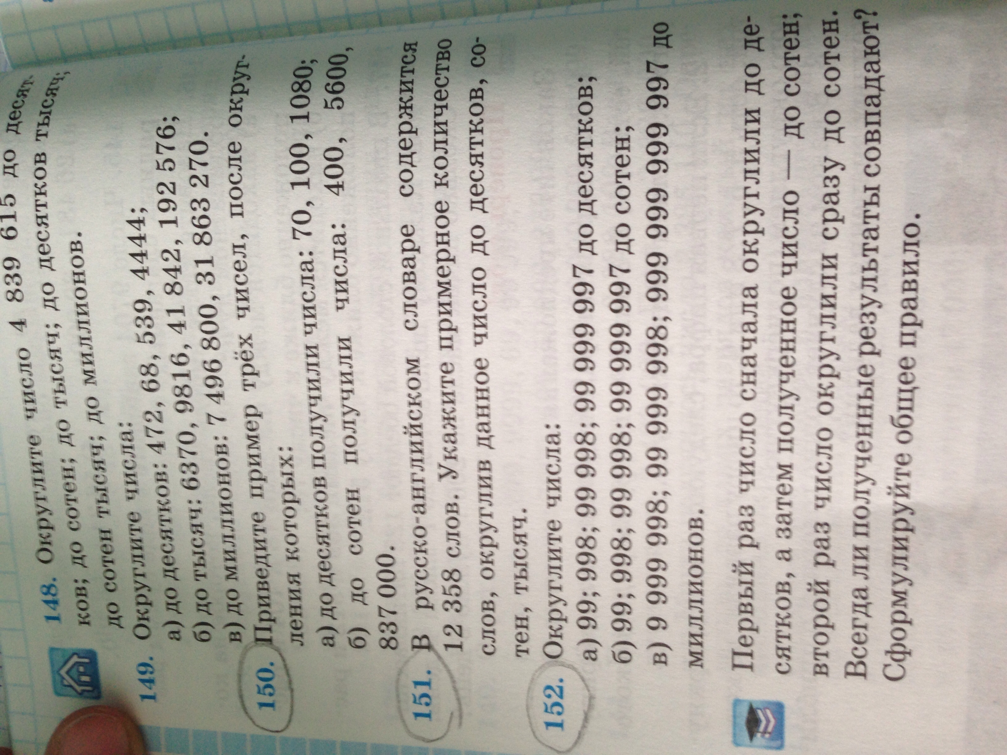 Срочно помогите! Даю 17 баллов и лучший ответ если смогу!!!!! Номер 150, 151, 152. (Округление натуральных чисел)!!!! Выполните хотяб одно...(