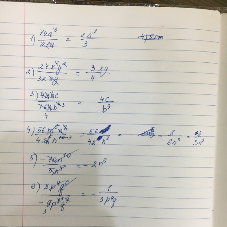 4) 56m^5n^7/42^5n^10;