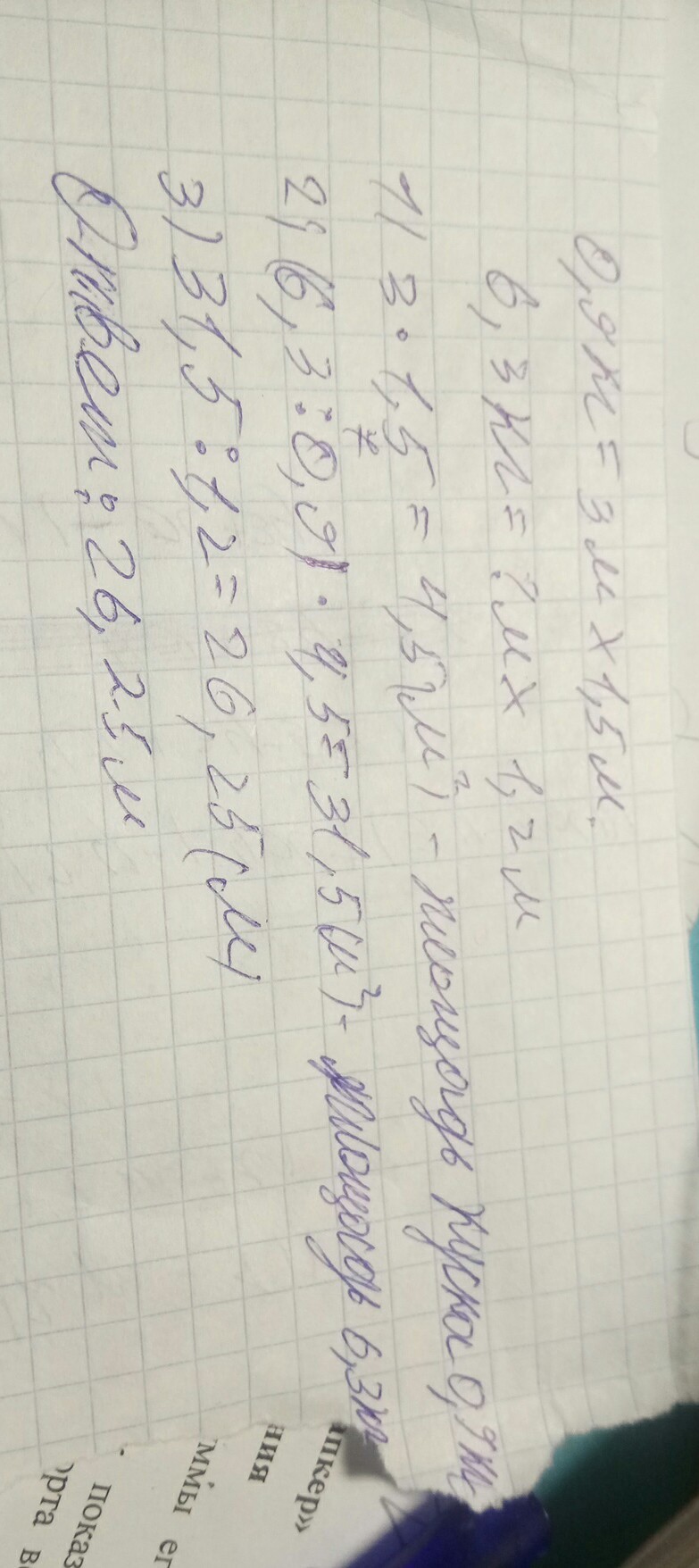 Из волокна массой 0,9 кг прядут ткань длинной 3 м и шириной 1,5 м. Какой длинны получится ткань из такого же волокна массой 6,3 кг,если ширина ее 1,2 м ?