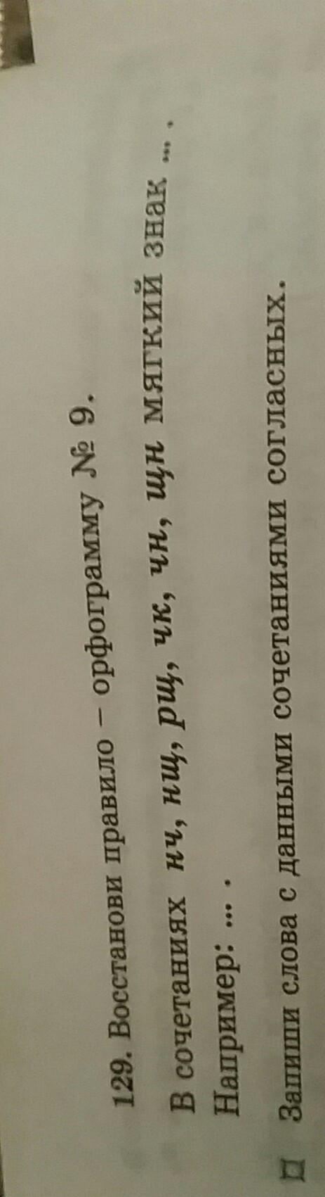 восстанови правило- орфограмму В сочетаниях НЧ, нщ, рщ, ЧК, чн, щн, мягкий знак .... например. ...