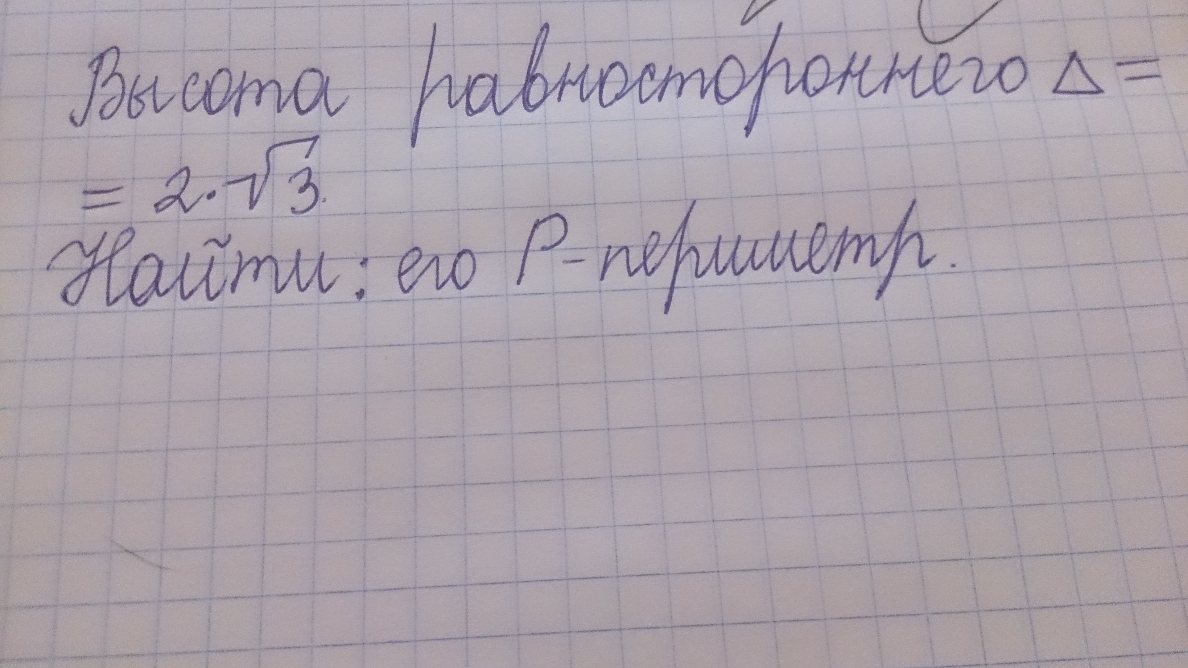 а = 2 * 2√3 ÷ √3 (корни сокращаются) ⇒ 2*2 = 4 -1 сторона