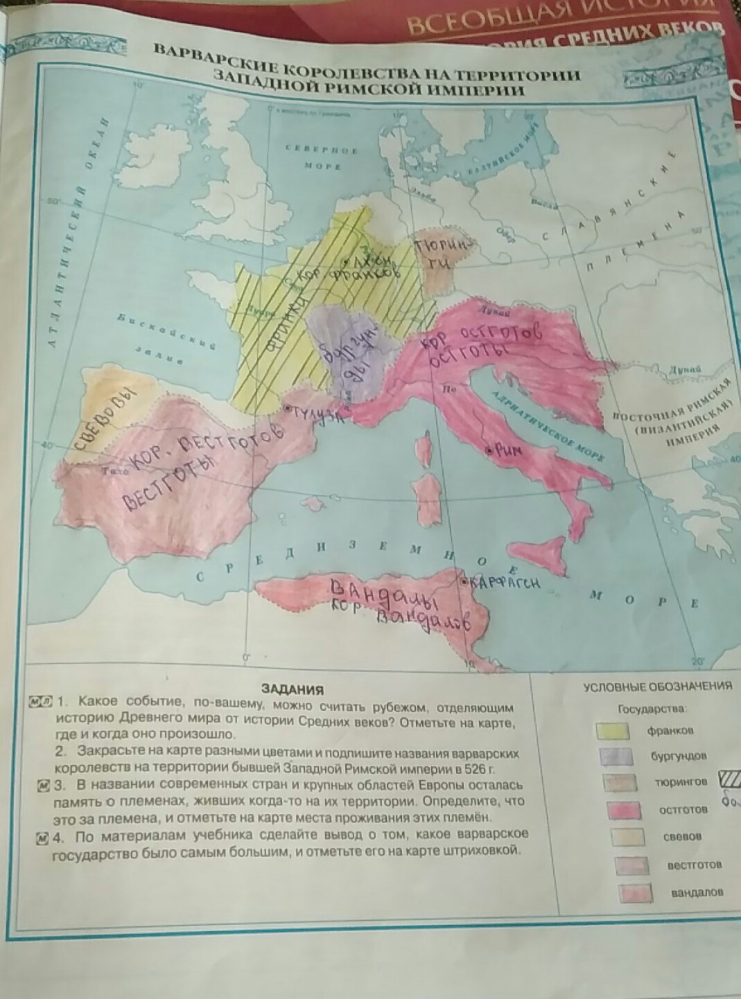 Какое событие по вашему можно считать рубежом отделяющим историю Древнего мира от истории средних веков отметьте на карте где и когда оно произошло