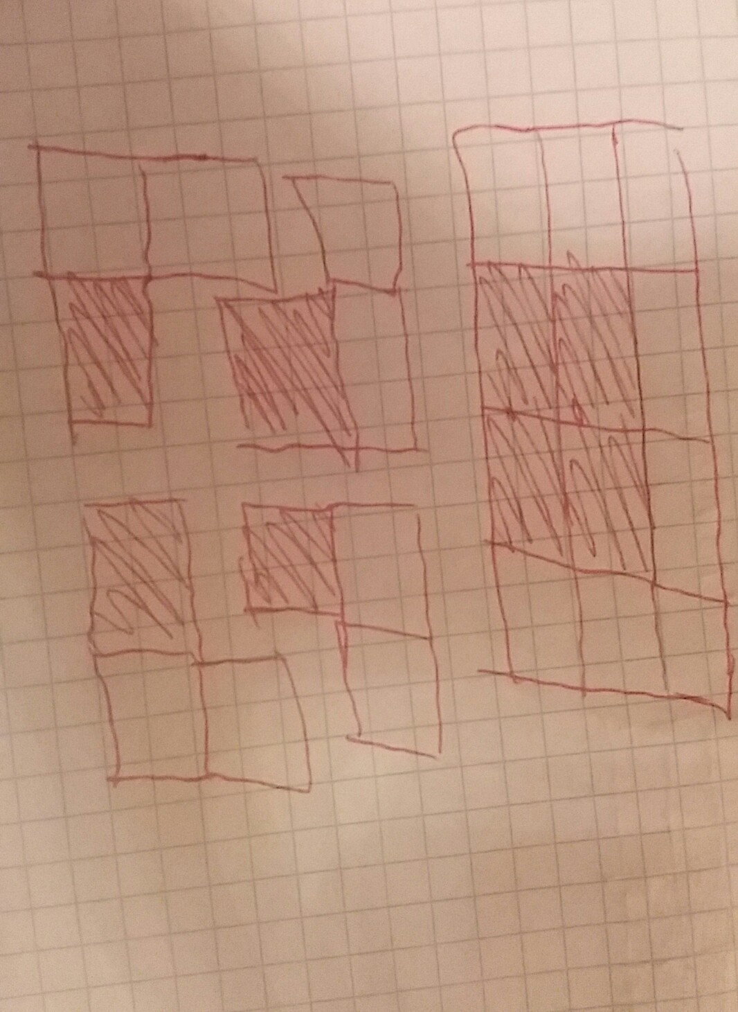 низ две и две клетки вторая с низу по бокам третья с низу в середине две и вся строка вверху