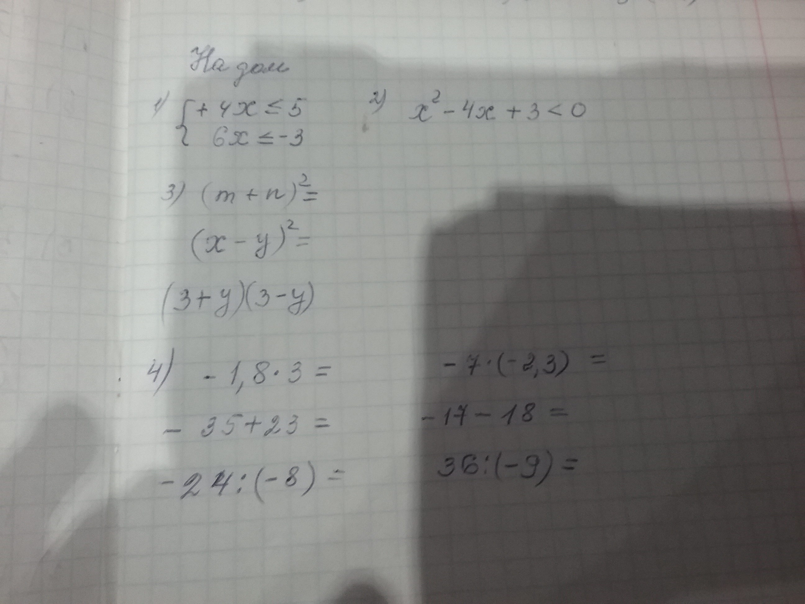 3. m^2+ 2mn+n^2