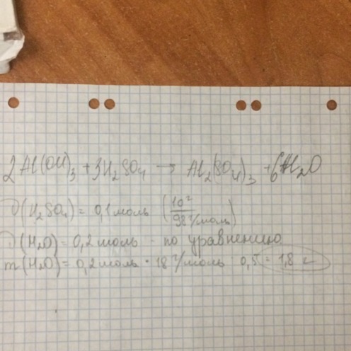 Сколько г воды получится, если смешать гидроксид алюминия с 10 г серной кислоты, содержащей 50% примесей?