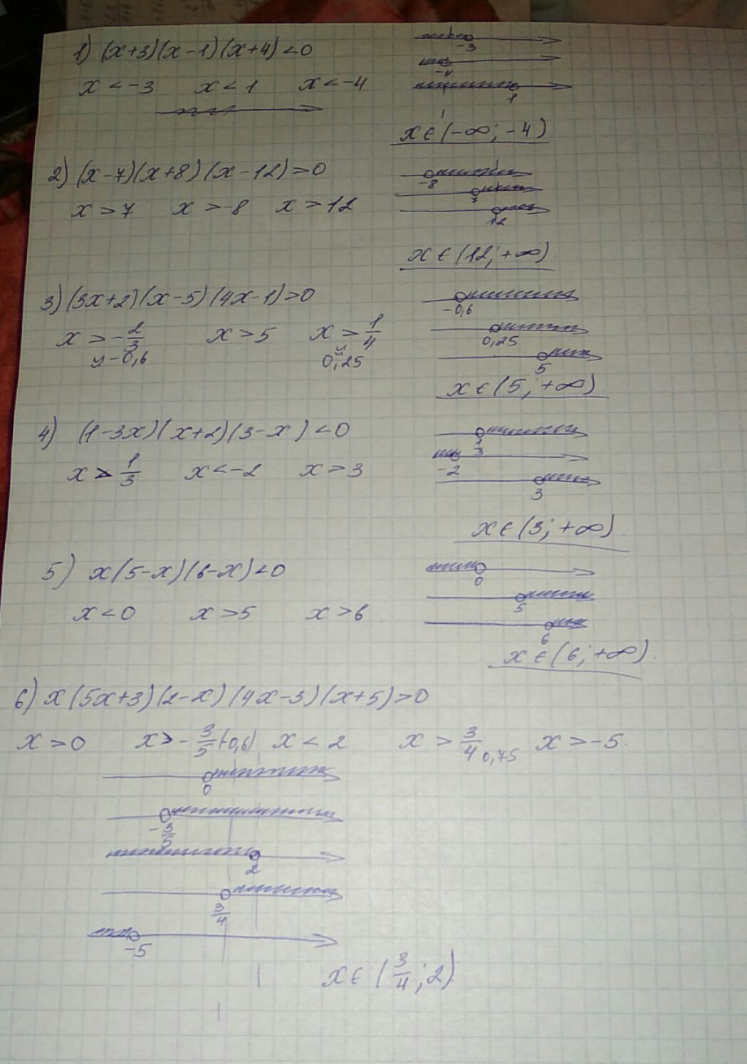 6)Х(5х+3)(2-х)(4х-3)(х+5)>0