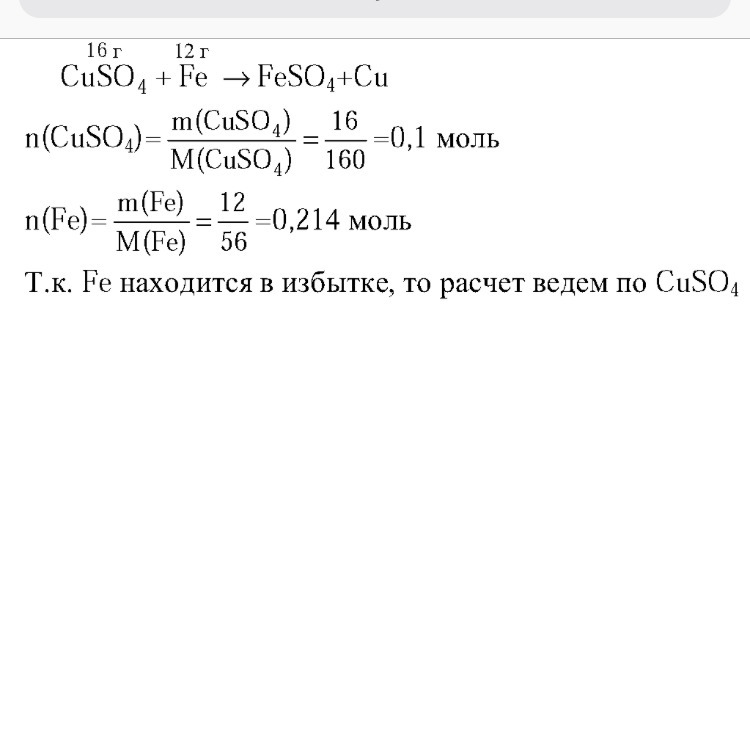 CuSO4 прореагирует польностью,Fe в избытке