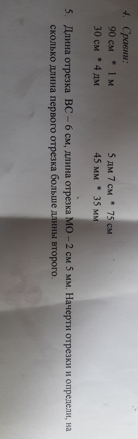 Ответ: Отрезок ВС больше отрезка МО на 3см 5мм