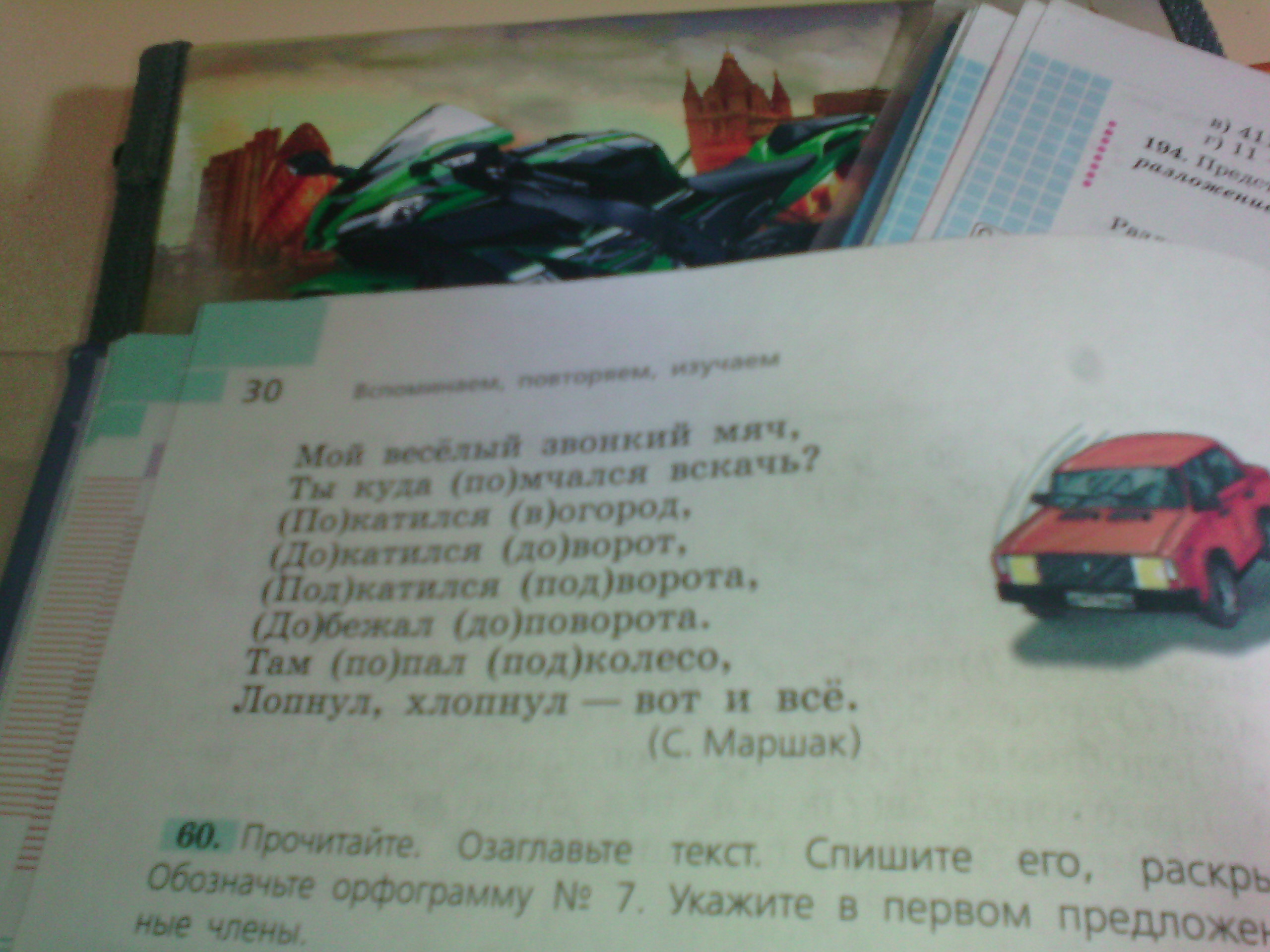 помчался, в огород, докатился, до ворот, подкатился, под ворота, добежал, до поворота, попал, под колесо