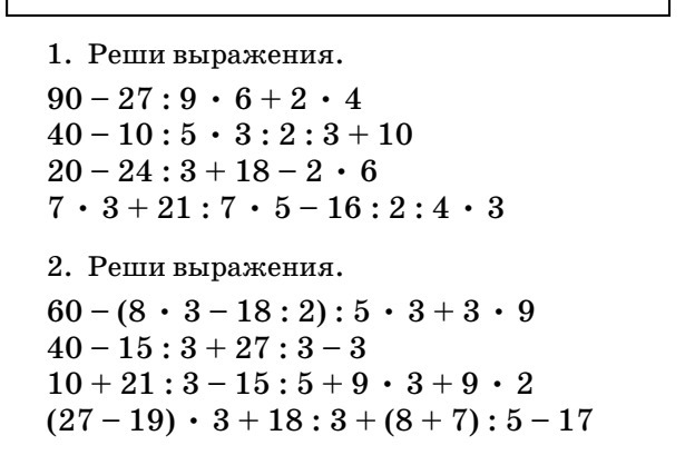 90 - 27 : 9 * 6 + 2 * 4 = 44