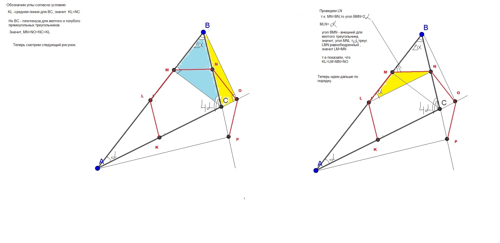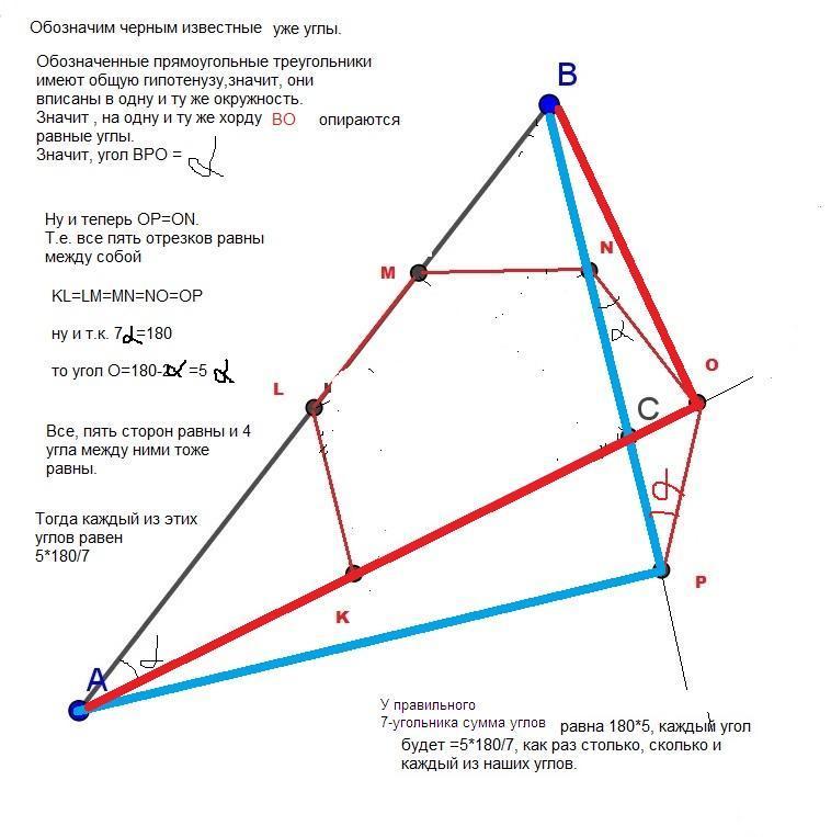 Углы треугольника образуют геометрическую прогрессию со знаменателем 2. Докажите, что середины сторон и основания высот этого треугольника являются шестью вершинами правильного семиугольника.
