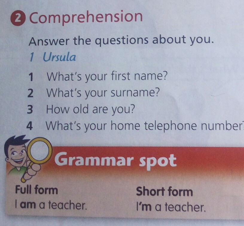 Какое у тебя имя ? Какая у тебя фамилия ? Сколько тебе лет ? Какой твой домашний телефон ?