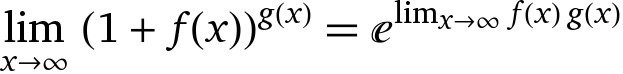 В принципе вверху все верно написано. Я бы немного по-другому писал, но возможно это будет тоже непонятно: Берем натуральный логарифм от всего этого выражения и ищем его предел при x→∞. Получается g(x)ln(1+f(x)). Так как ln(1+z) эквивалентен z при бесконечно малом z, то ln(1+f(x)) заменяем на f(x). Получается g(x)f(x). Собственно все.