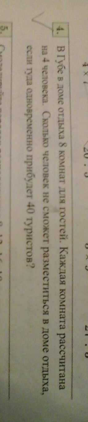 10 человек.Подумай если будет 4 комнаты и будет 40 туристов. и так 40:10 и 4