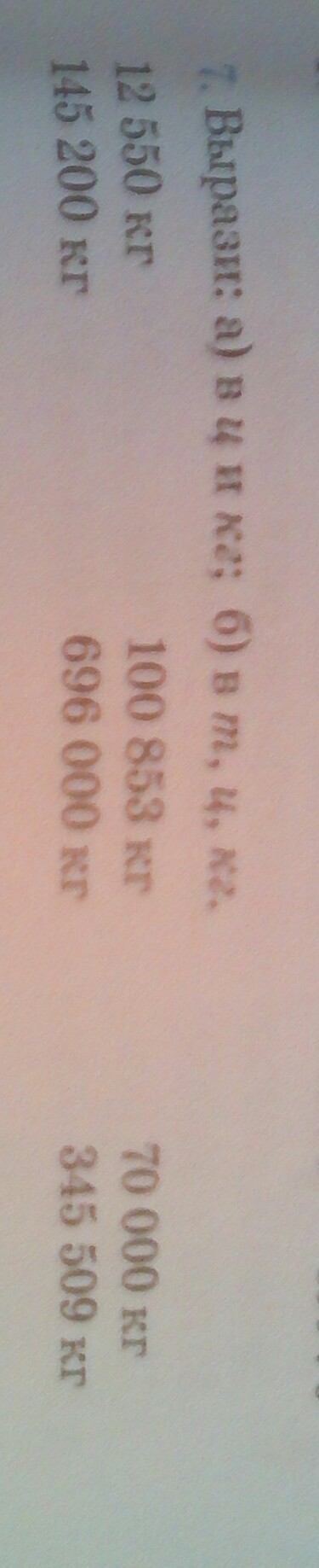 12 550 кг = 125 ц 50 кг = 12 т 5 ц 50 кг 145 200 кг = 1 452 ц = 145 т 2 ц 100 853 кг = 1 008 ц 53 кг = 100 т 8 ц 53 кг 696 000 кг = 6 960 ц = 696 т 70 000 кг = 700 ц = 70 т 345 509 кг = 3 455 ц 9 кг = 345 т 5 ц 9 кг