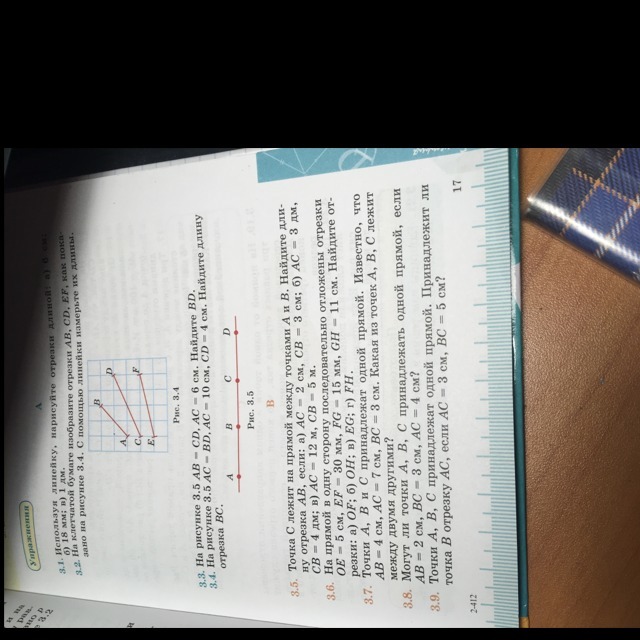 Точки A, B и C принадлежат одной прямой. Известно, что AB=4 см, AC=7 см, BC=3 см. Какая из точек A, B, C лежит между двумя другими