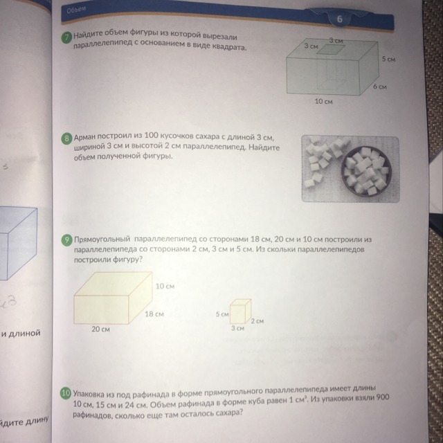 V=Vкв-Vпарал.=300см³-45см³=255cm³