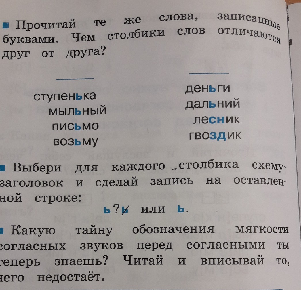 Я конечно точно не знаю, но может в первом столбике слова, где везде есть ь знак, а во втором наоборот